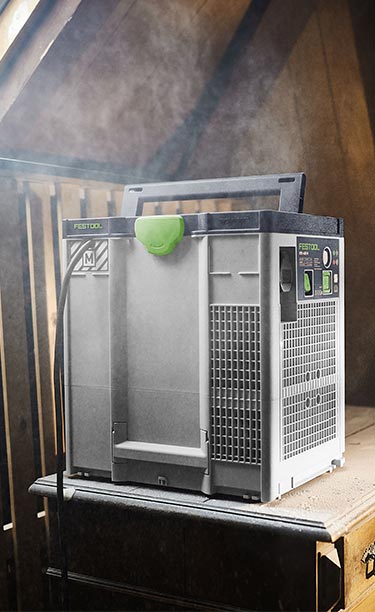 Fűrészeléskor, maráskor vagy csiszoláskor a szakszerű elszívás ellenére is keletkezhet por. A légtisztítók ezt a szálló port szűrik ki a levegőből. Egy 1 µm átmérőjű finom porszemcse alig 7 óra alatt süllyed 1 métert (forrás: BG Bau). A Festool légtisztítójának köszönhetően kevesebb a takarítási erőfeszítés, nagyobb a tisztaság és jobb a levegőminőség.
